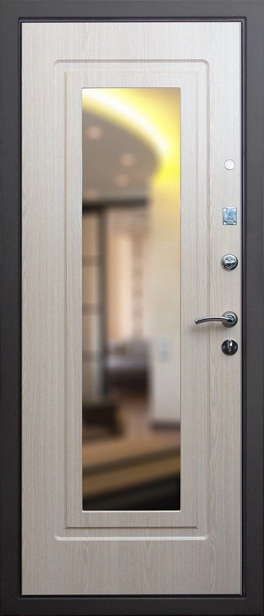 Прочная металлическая Дверь с зеркалом DZ385 по цене от 30 000 руб. под заказ в любой комплектации. Вы можете выбрать материал, замки, цилиндры и многое другое. Производим сами! Быстрая доставка и установка в Люберцах.