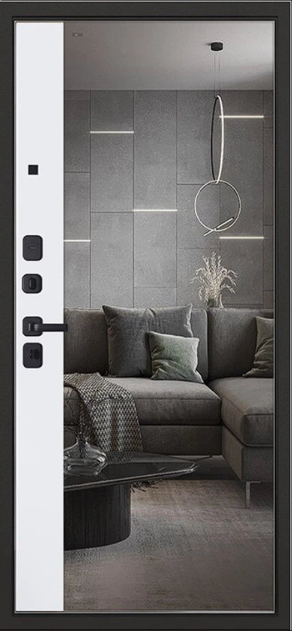 Надежная входная Дверь Scandi с зеркалом премиум класса по цене 45 491 руб. Большая толщина стали защитит от проникновения в ваш дом, квартиру или коттедж. Используется очень качественная фурнитура: замки, цилиндры, ручки, защелки. Покрытие и отделка двери изготовлено под внимательным контролем производителя. Дверь имеет долгий срок службы и гарантию.