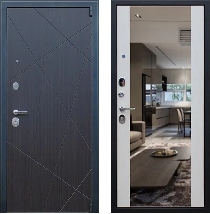 Надежная входная Дверь Вектор с зеркалом премиум класса по цене 49 341 руб. Большая толщина стали защитит от проникновения в ваш дом, квартиру или коттедж. Используется очень качественная фурнитура: замки, цилиндры, ручки, защелки. Покрытие и отделка двери изготовлено под внимательным контролем производителя. Дверь имеет долгий срок службы и гарантию.