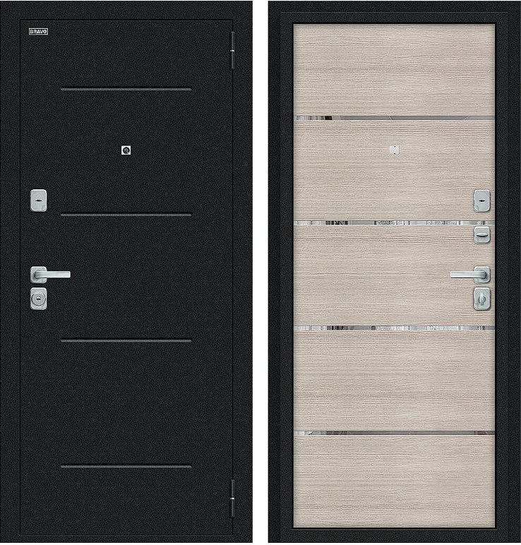 Надежная входная Дверь Браво Лайн/BChrome Букле черное/Cappuccino Melinga премиум класса по цене 33 691 руб. Большая толщина стали защитит от проникновения в ваш дом, квартиру или коттедж. Используется очень качественная фурнитура: замки, цилиндры, ручки, защелки. Покрытие и отделка двери изготовлено под внимательным контролем производителя. Дверь имеет долгий срок службы и гарантию.